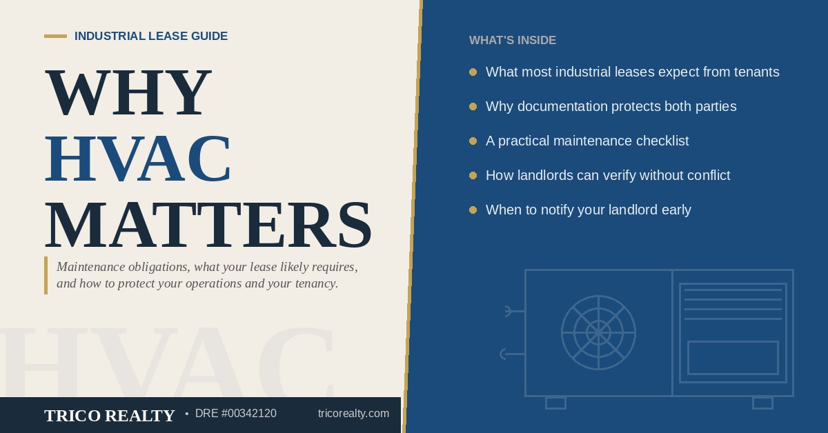 From an ownership standpoint, HVAC — especially rooftop units exposed to sun, wind, and weather year-round — is one of the most significant maintenance risks on an industrial property.
