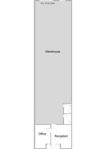 Unit 1629 features an open reception area, one (1) private office, two restrooms, and a warehouse. The warehouse features one (1) ground level (GL) door with a twelve foot clearance.