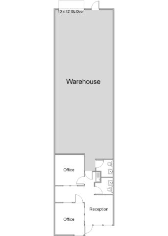 This unit has a reception, two (2) offices, two (2) restrooms, a warehouse, and a bullpen area.