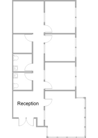 Office suite with frontage & signage along Santa Anita Avenue featuring a reception area, 3 private offices, & 2 restrooms.