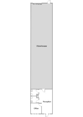 Unit 951 features a reception area, one (1) private office, two (2) restrooms, kitchenette, and warehouse space with new LED lighting throughout, fresh paint, exposed concrete flooring, and warehouse space with (1) 10’x12′ roll up door and 16′ clearance from floor to ceiling.
