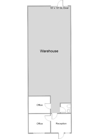 1725 Monrovia, Unit A5 features a reception area + two private offices, one restroom, and warehouse space.