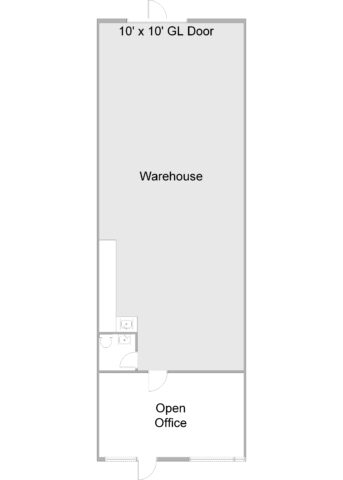 Unit D2 features an open office area in the front with polished concrete floors, 1 bathroom, and warehouse. The warehouse has one (1) ground level door with 12′ clearance.