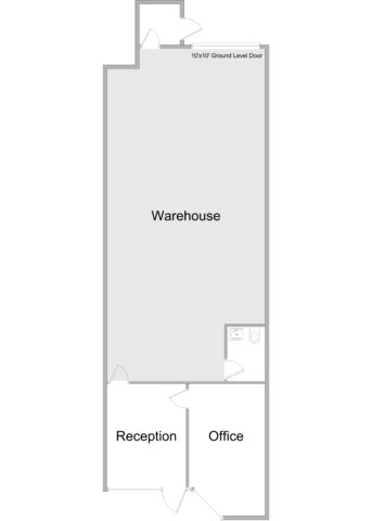 Reception, 1 office, restroom and warehouse. Warehouse ground level door is 10 x 10 ft.
